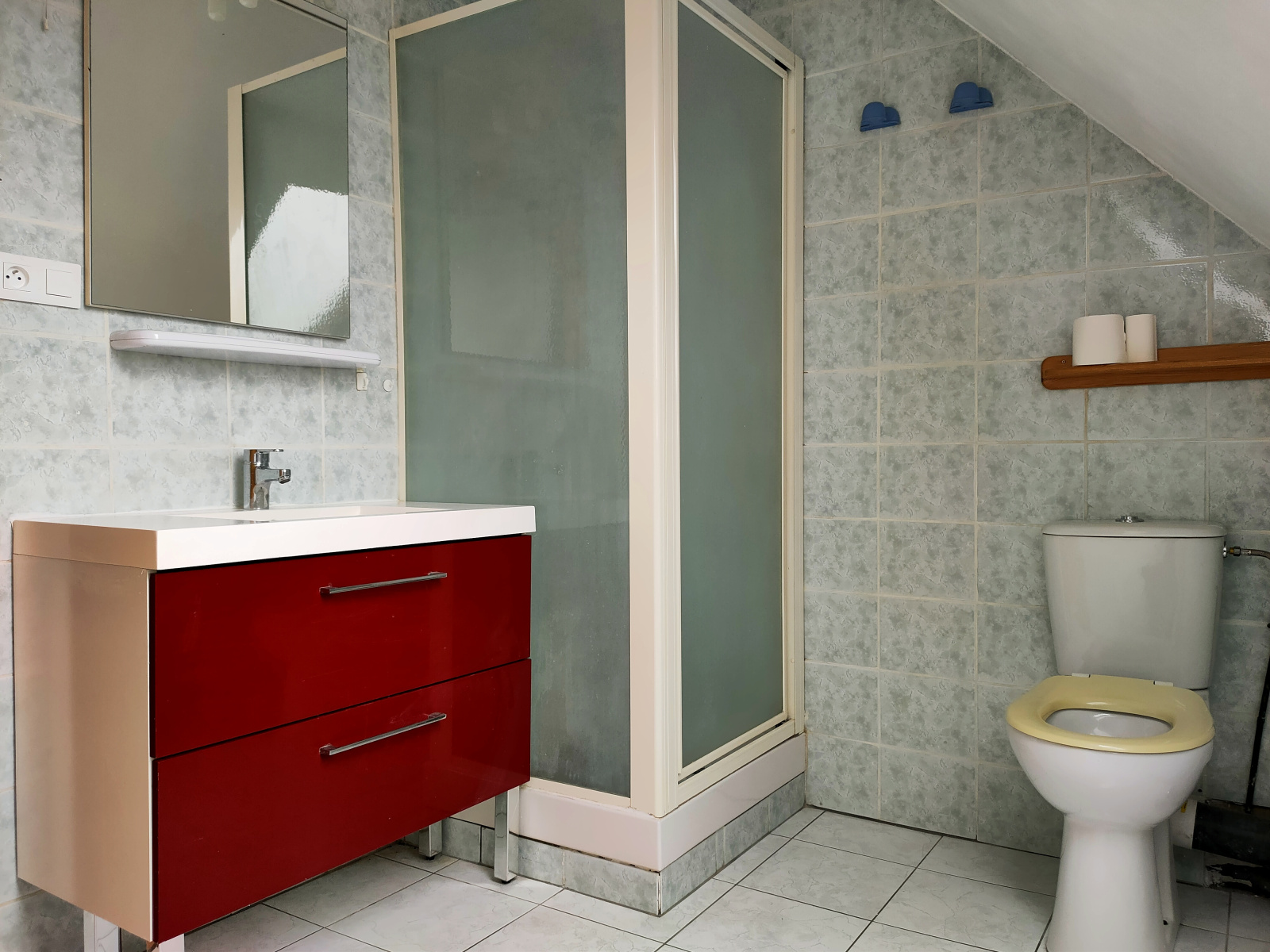 Au 1er étage vous trouverez deux chambres, une salle de douches avec w/c ainsi qu'une pièce pouvant servir de placard de rangement ou petit bureau.