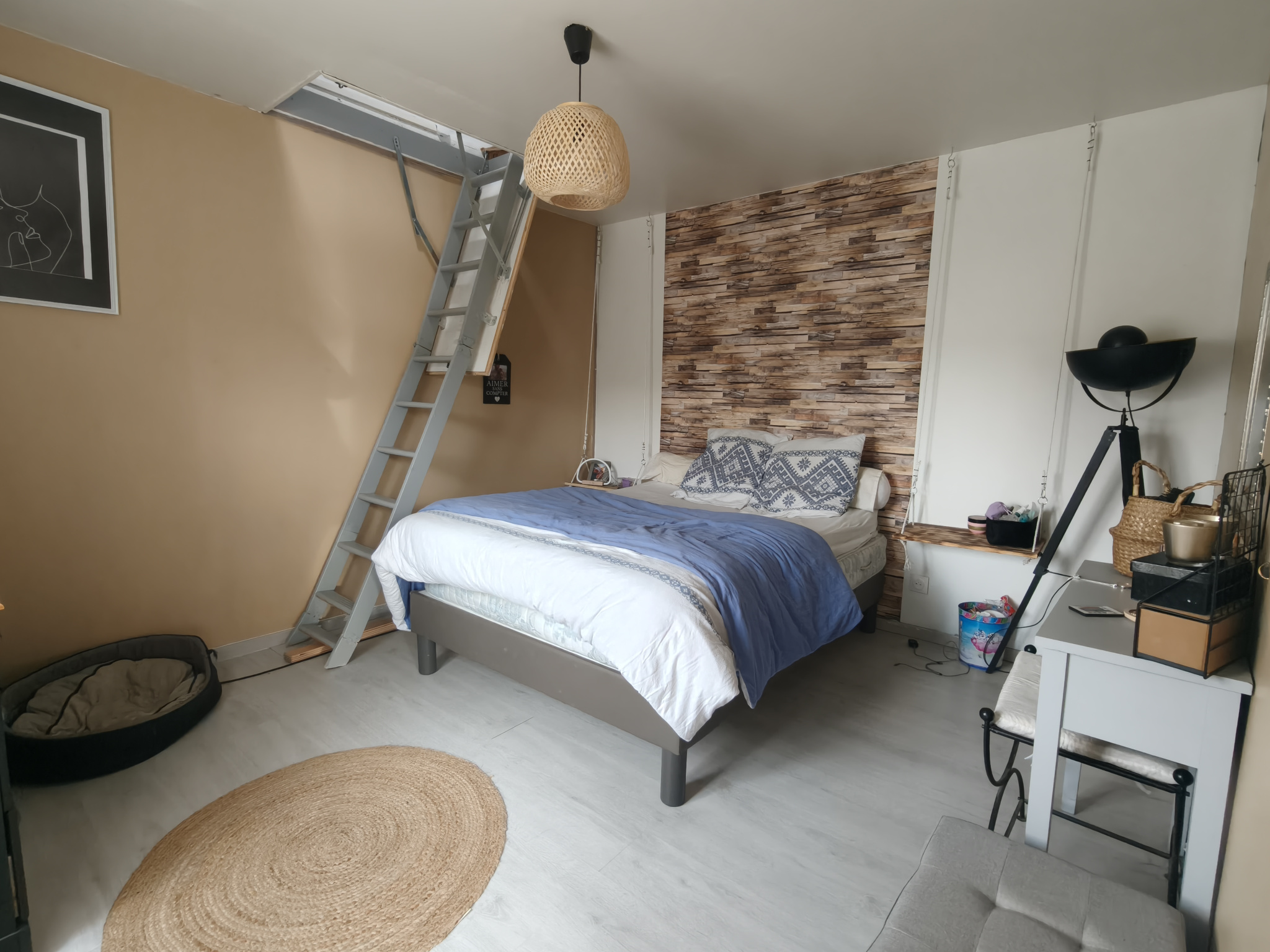 Au premier étage une pièce palière dessert deux chambres.
