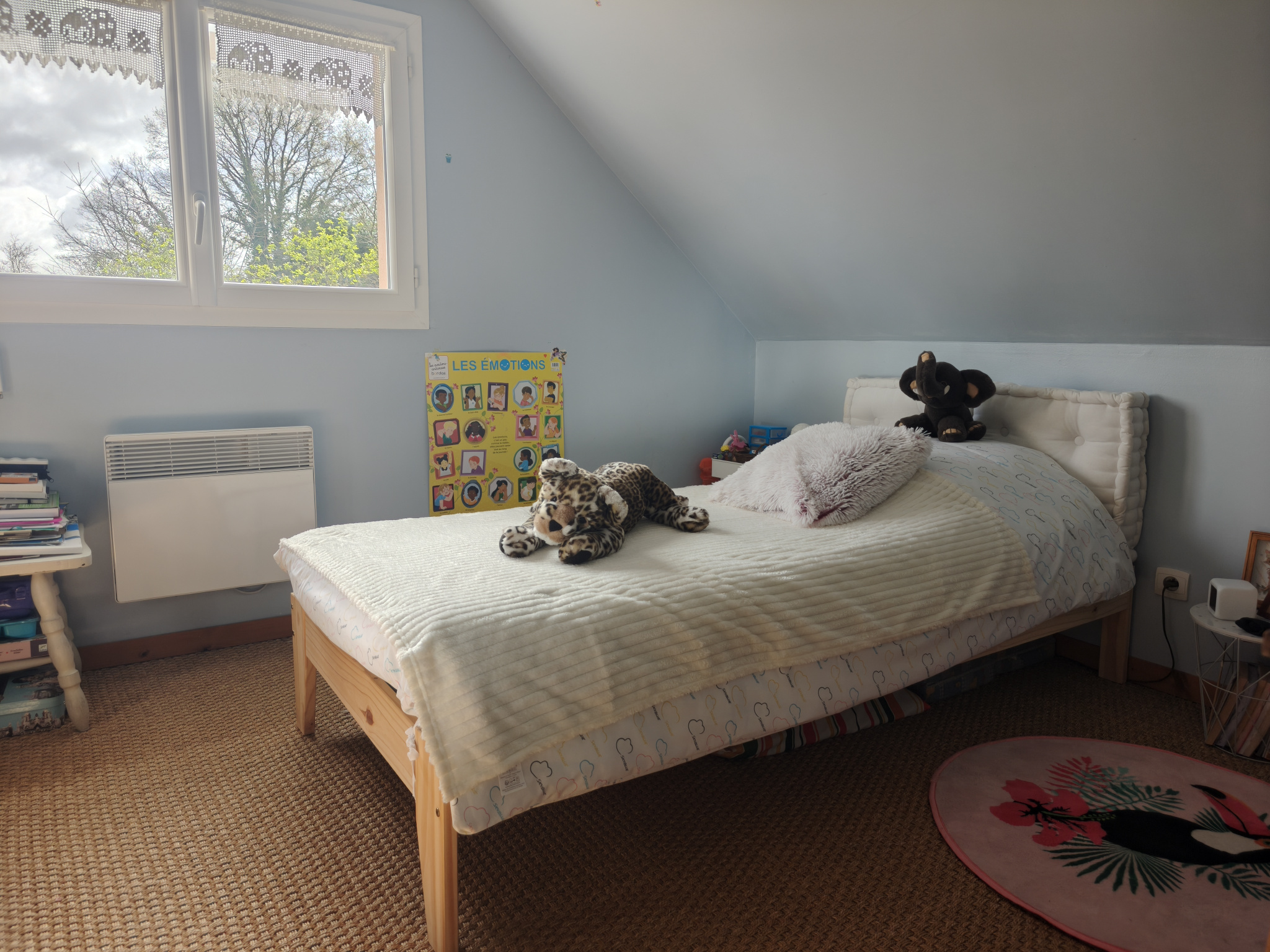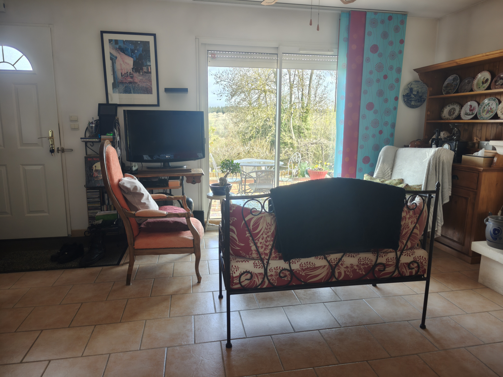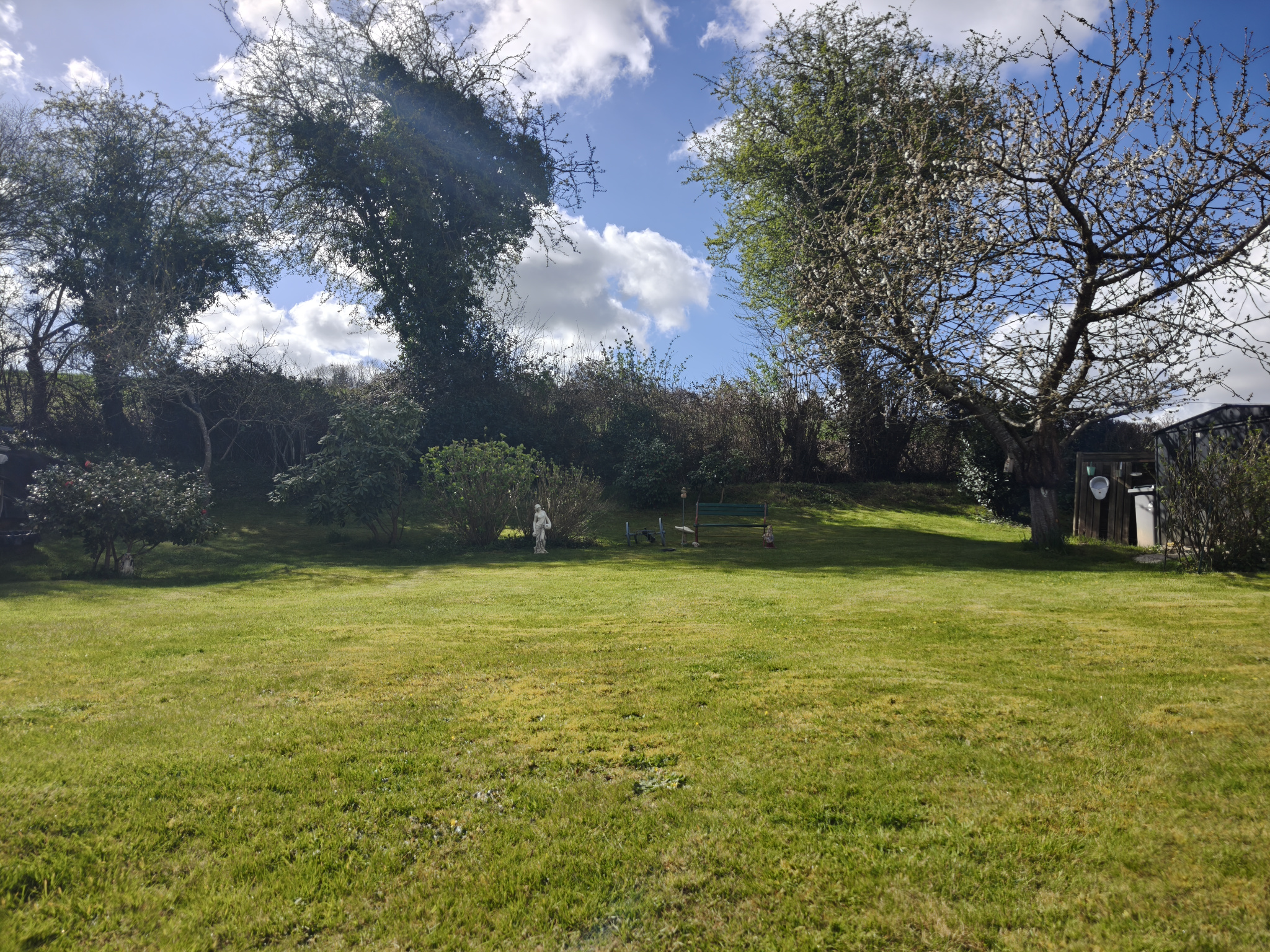 Un terrain arboré de 1500 m² avec cerisier, figuier et pêcher et double terrasse.