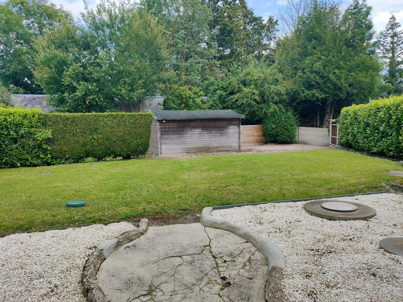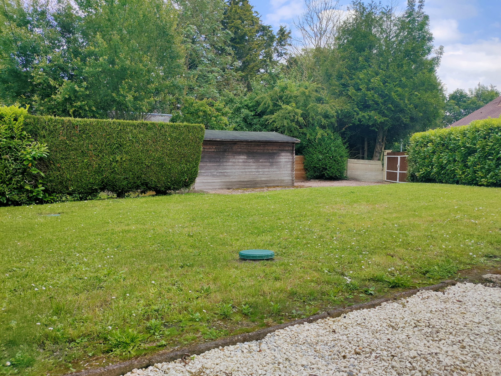 Terrain de 450 m² avec garage et local technique.